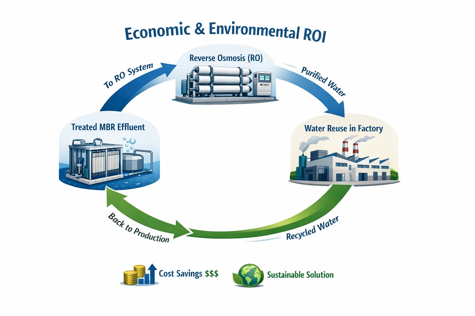 - Penghematan: Dengan mendaur ulang 70-80% air proses, pabrik dapat menghemat ratusan ribu dolar setiap tahunnya dalam biaya pengadaan dan pembuangan air.
