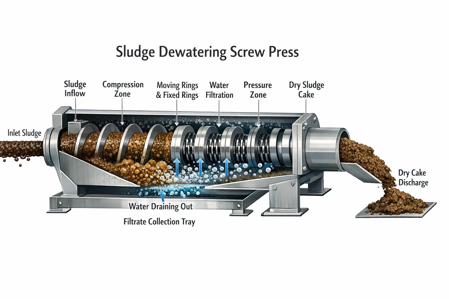 3. Padatan Bagian Belakang: Mesin Press Sekrup Pengeringan Lumpur